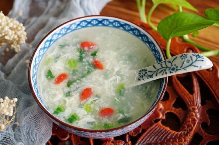 4、提前打散的鸡蛋液,以转圈的形式淋入锅中,等待3秒后搅拌均匀,开火再次煮沸,加入枸杞即可。