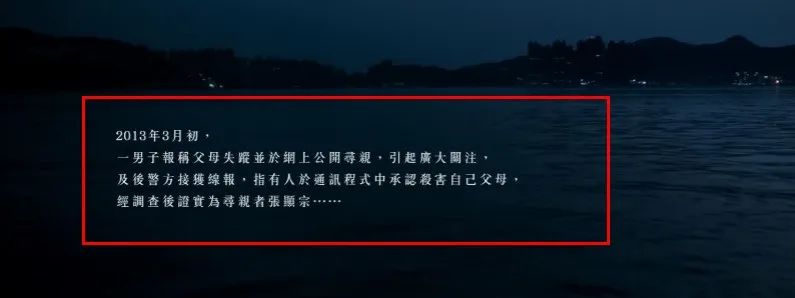 电影开场没多久的一场戏,张显宗作为杀害自己父母的凶手,不仅将父母杀害后,还找来了记者拍了一部“寻亲片”,妄图拖延、干扰警察的判案时间。