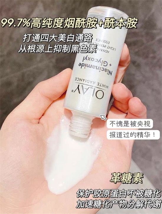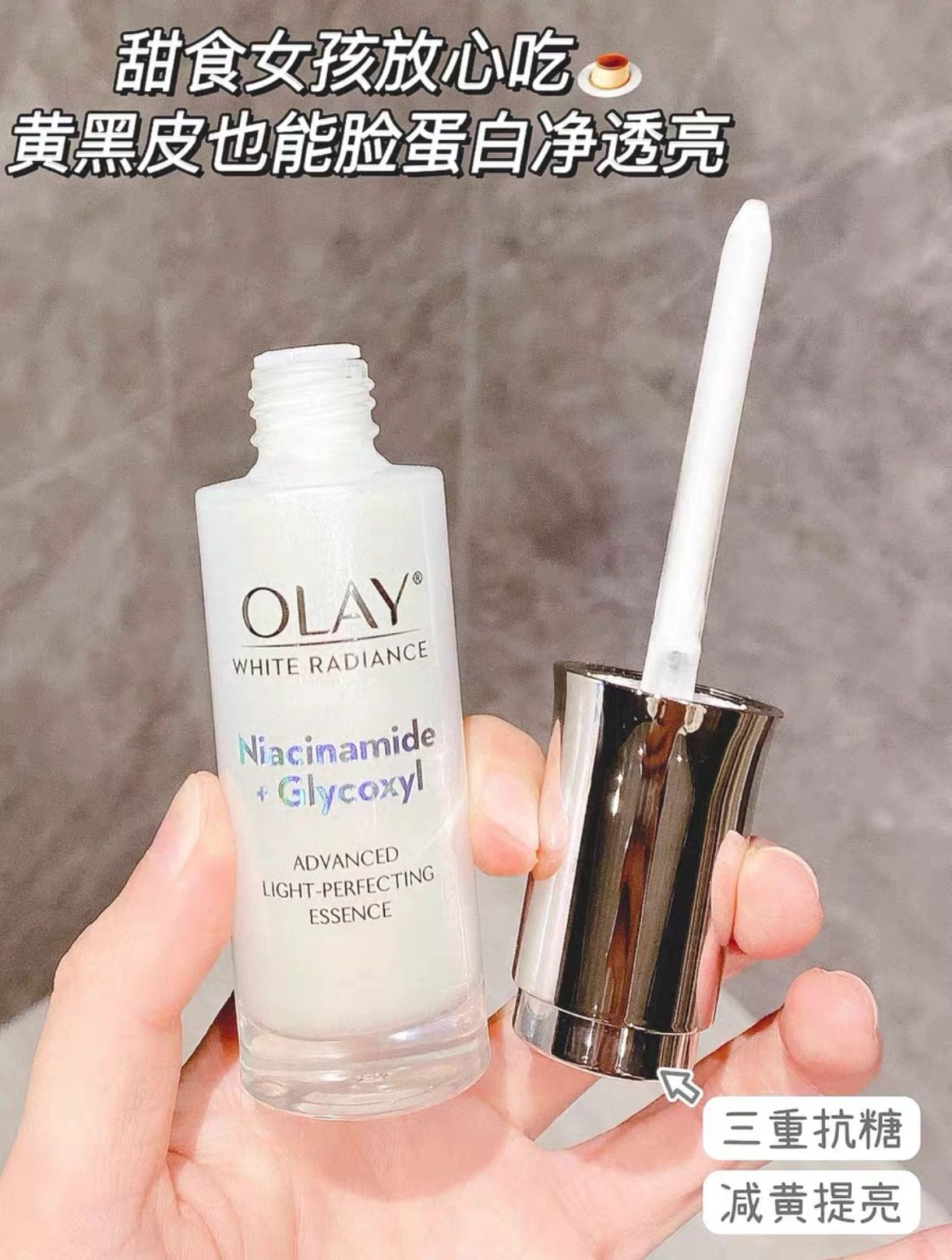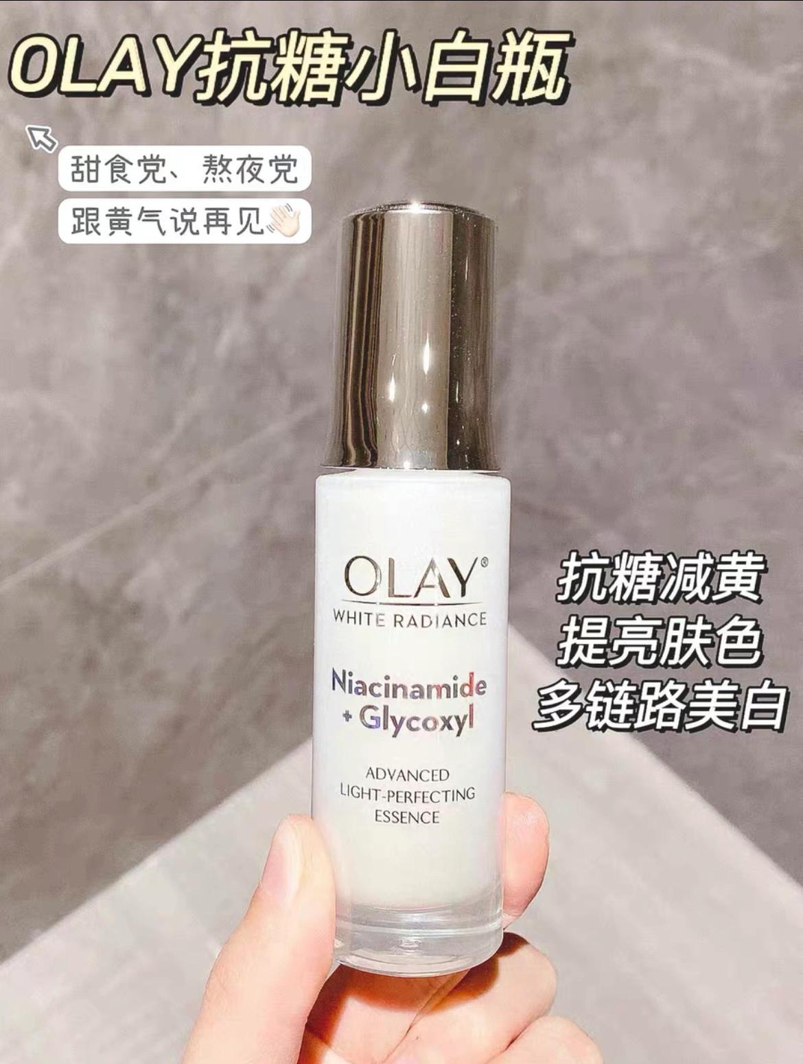 Olay家全新升级的抗糖小白瓶,就是专门针对皮肤糖化暗沉、发黄而研发的,去除脸部黄气才能让皮肤显现出白皙和透亮。