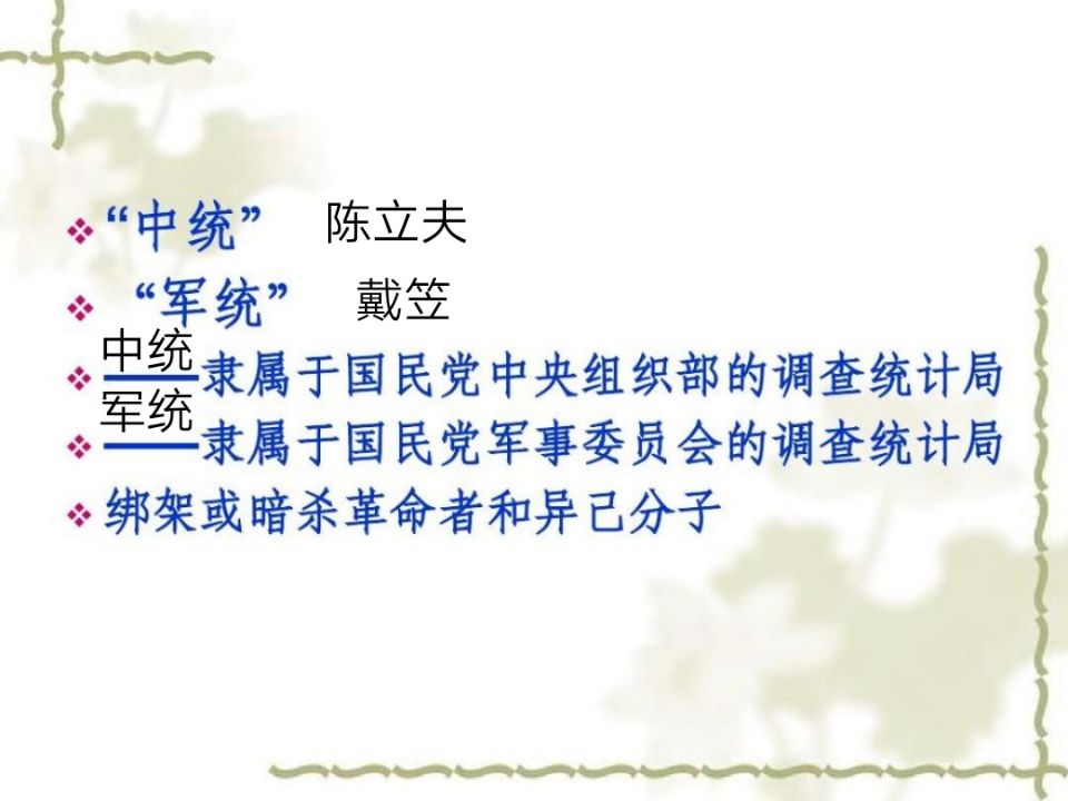 然而,蒋介石认为:党务调查科处理的是党内异己人士,这还远远不够,他还需要一个行事更为机密狠毒的情报、特务机构来处理党外异己人士。这就是军统登场的原因。