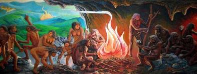 我想那个被后人尊称为”燧人氏”的原始人,应该也是偶然把一根质地坚硬且一头尖锐的木棍在另一块硬木头上使劲地钻,突然冒出火星来(也有说把石器敲敲打打,敲出火花来),因而灵机一动,反复试验,终于取出火来。这就是”钻木取火”。从那时候起,人们就不愁不小心熄灭了火种,就可以随时随地取火,可以常态化地吃到烧熟的东西,并且冬天还可以烤火避寒。