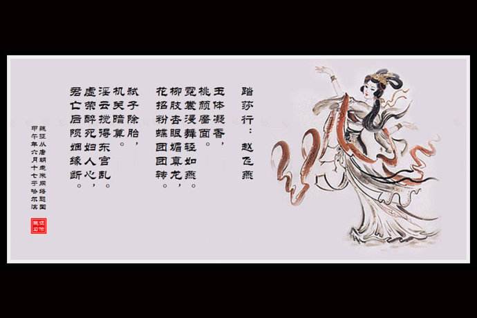 赵飞燕(前45年-前1年),西汉汉成帝的第二任皇后,汉哀帝时的皇太后,其原名未被正史记载,通常认定为宜主。赵飞燕体态轻盈,身轻如燕,传说中能作掌上舞,是一位在中国民间和历史上传奇的女子。正史上对她的记载很少,然而关于她的野史逸书却又很多,赵飞燕与与妹妹赵合德的故事是一个不断流传并逐渐丰富发展的过程,尤以《西京杂记》、《飞燕外传》最为影响深远。