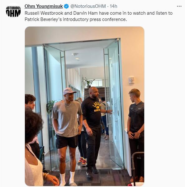 湖人为新援贝弗利举办了新闻发布会,威少和主帅汉姆亲临现场,威少向新队友贝弗利送上了击掌和拥抱。很明显两人已经化解了此前的矛盾。