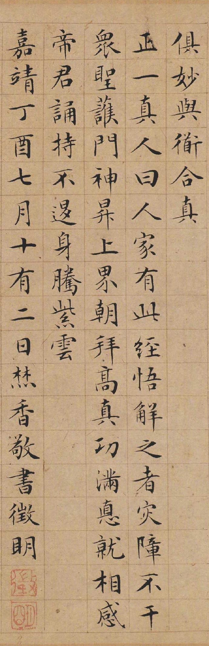 小楷《太上老君说常清净经》凡37行,书于明世宗嘉靖十六年(1537年)七月十二日,时年68岁。现藏天津市艺术博物馆。