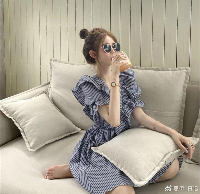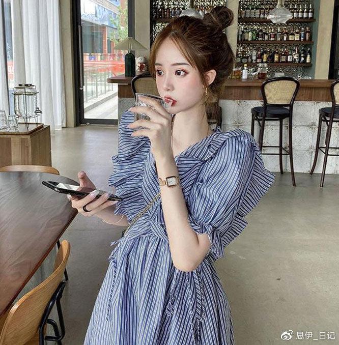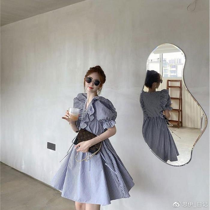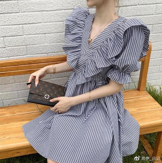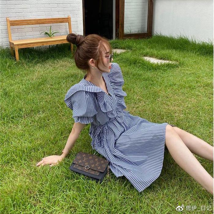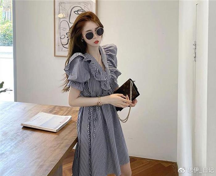 这个夏末流行法式连衣裙,搭配上条纹的时尚感,真的是超赞