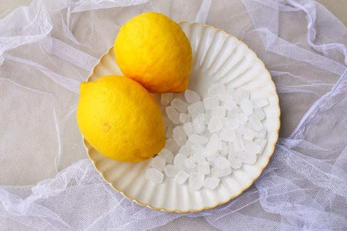 【烹饪食材】:新鲜的柠檬两个,冰糖一斤,盐一勺。