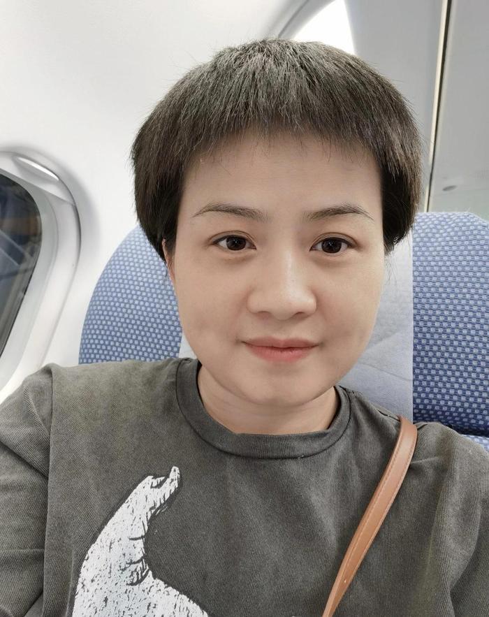 因为身体的原因,郑敏为了做手术不得不剪掉了她的一头长发,光头的发型也是相当的考验一个人的五官颜值,这一点在郑敏的身上就明显的体现出来,即便是光头,也不影响郑敏五官的精致感,反而看起来更加的“慈眉善目”,圆圆的眼睛、眉毛,让她看起来非常喜庆,真的是天生自带福相。