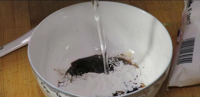 4、准备一个碗,在碗中加一勺盐,一勺生抽,一勺老抽,适量的蚝油,少放点胡椒粉,再放点淀粉,加点清水,搅拌均匀,