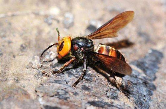 日本大黄蜂是世界上体型最大的黄蜂,它拥有非常巨大的毒刺,毒刺上含有的毒液具有很强的腐蚀性,它们可以在轮胎、箱子、盒子和空车等地方建造独特的巢穴,人们已经知道,这些可怕的蜜蜂如果变得兴奋和咄咄逼人。它非常的凶残和无情,被称为来自地狱的大黄蜂。