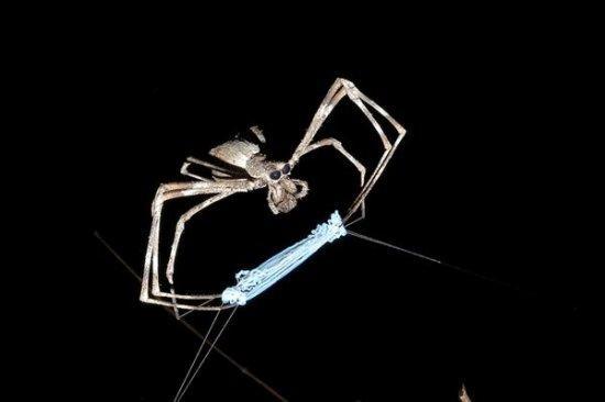 一般的蜘蛛有8只眼睛,但是这种灰绿色的鬼面蜘蛛却只有二只眼睛,并且具有非常强大的夜视能力,它们织网的能力比普通蜘蛛要高强,蛛网有膨胀的功能。可对于其他昆虫来说,它是夜晚最可怕的杀手。