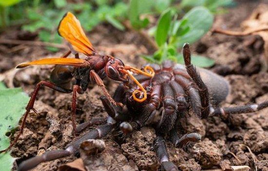 这是一种生活在美国新墨西哥州沙漠地区的身体巨大的黄蜂,它也是世界上最大的蜂类昆虫,被它咬过的伤口被称为世界上最疼的伤口,而且它是以一种肉食动物,所以特别的凶残。