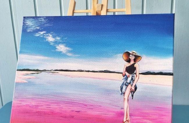 蒋丽莎的画却颇为耐人寻味。一个浪漫的海滩边,一位丽人独自行走。绘画功力确实不错。画面唯美而又凄凉。