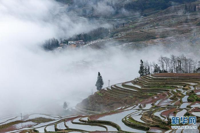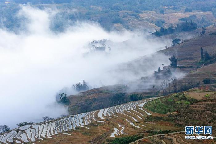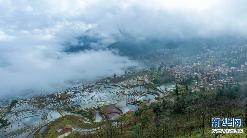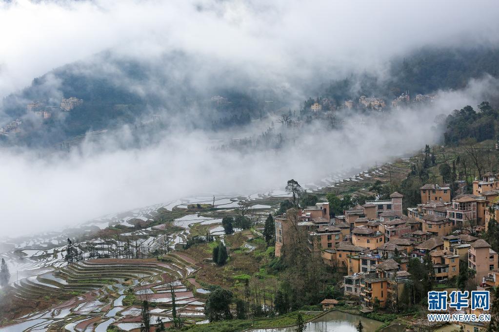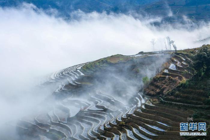 云雾缭绕的哈尼梯田(2022年1月2日摄)。新华网发(张洪科 摄)