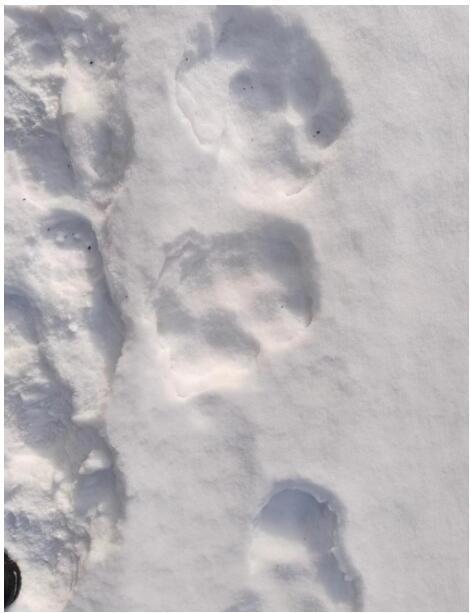 14日,新开林场一号管护站工作人员巡护时,在距离管护站仅百余米远的路上发现大型野生动物足迹和卧痕,经鉴定为野生东北虎觅食和休息时所留。