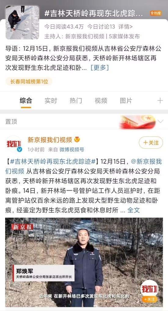 原标题:今日热榜丨吉林天桥岭林区再现虎踪