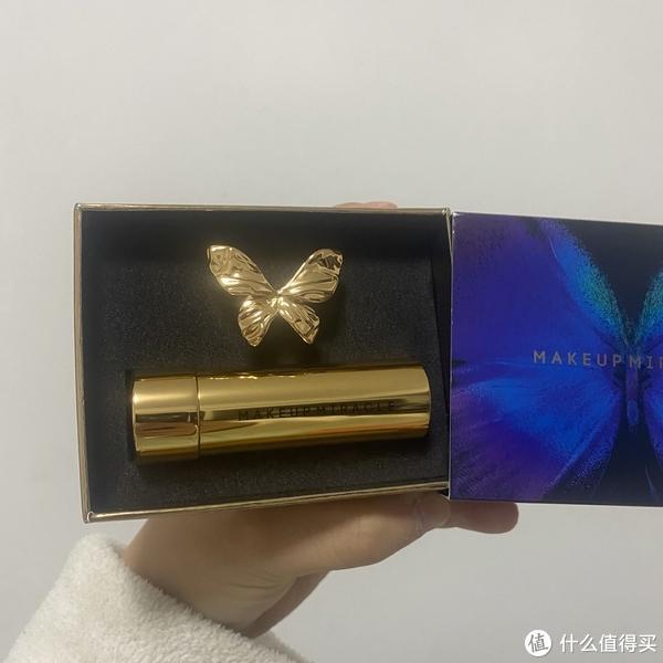 没想到一打开就是哈哈,金灿灿的一个蝴蝶原来是个口红啊,他都管身的质感做得也太棒了吧。