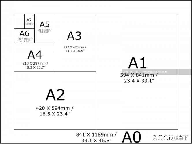 接下来的A1、A2、A3……等纸张尺寸,都是定义成将编号少一号的纸张沿著长边对折,然后舍去到最接近的毫米值。
