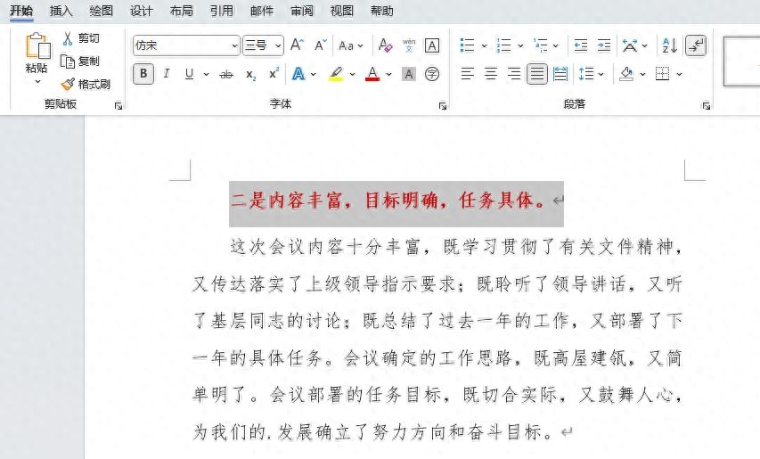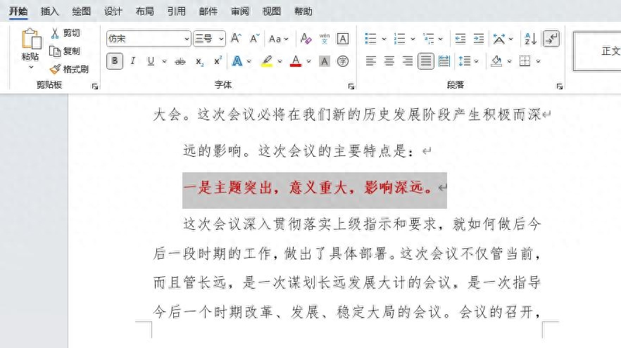 在后面选取了其他文字,也想把这些文字设置为红色:
