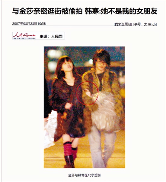 2007年3月21日,金莎被拍和韩寒有亲密行为。