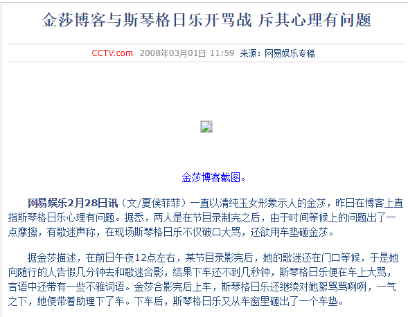 2008年,因为博客系统出bug,导致匿名留言会显出真实名,金莎便在此翻车了一次。