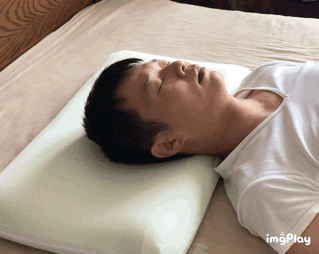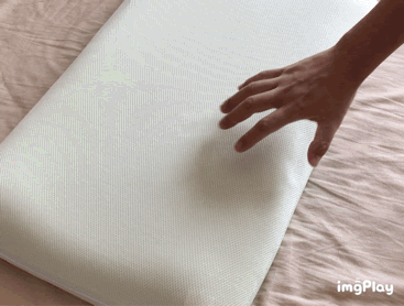 从动图上不难看出,记忆枕的翻身还是很顺畅丝滑的,但是PE枕头的区域划分明显为翻身提供了一些阻碍,想要翻身到高位处的侧身位还是需要费点力气的,举个例子就是要将一颗小圆石子滚出坑的那些力气,哈哈哈哈。我队友觉得无碍,因为他基本睡觉以后就是入定了,不怎么翻身。但是睡眠质量差,睡相差的我。。。觉得这个真的是个BUG。