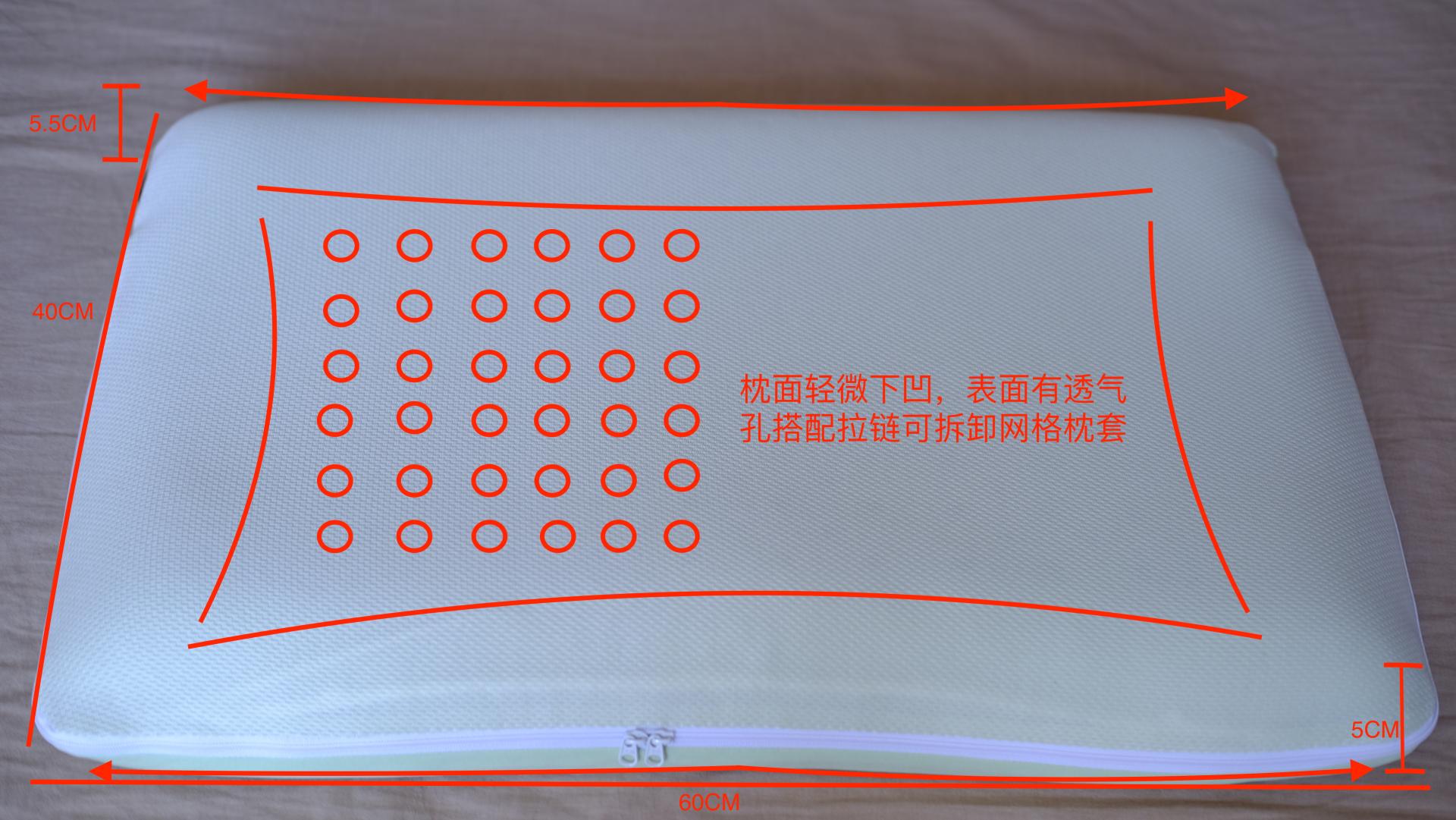 1.两款枕头的尺寸,材质,区域划分