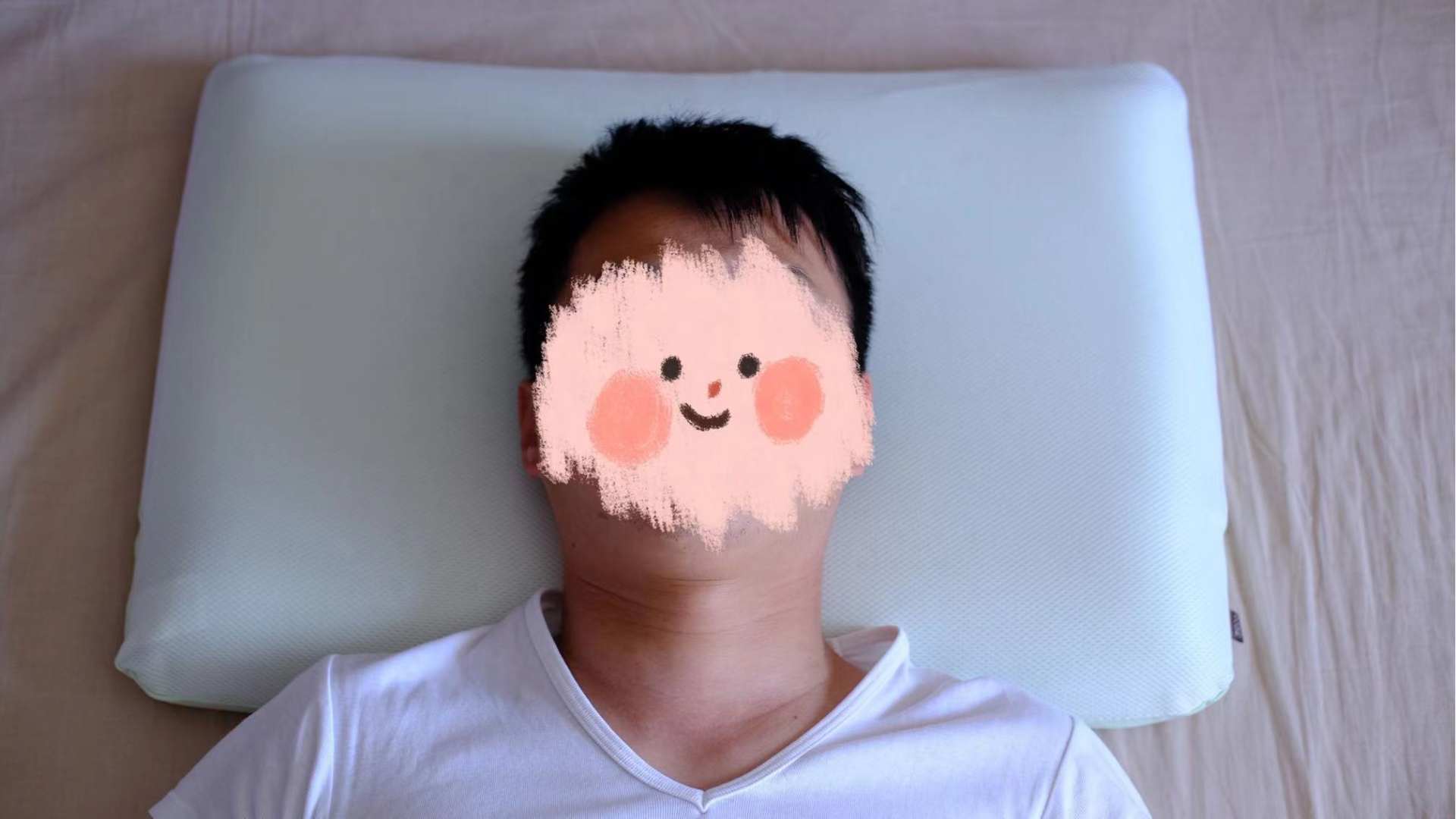 但是从正面看你就会发现为什么我还是略微喜欢记忆枕了,因为PE枕的包裹性太好,其实侧睡的时候会压住一部分鼻腔和嘴部,头几乎是半埋在里面的。我本人不是很喜欢这种感觉。