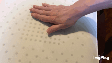 井上的grantecs这款枕头整体来说相对我以前用过的那些杂牌记忆枕的确回弹速度慢了很多,手指按下,基本上五个指印可以在枕面上停留好长一阵子,才慢慢消失。