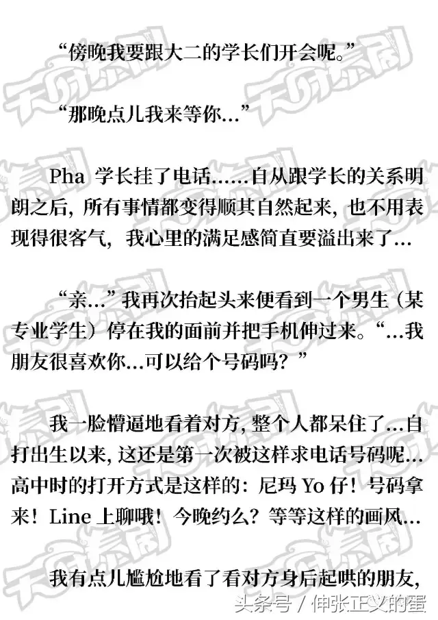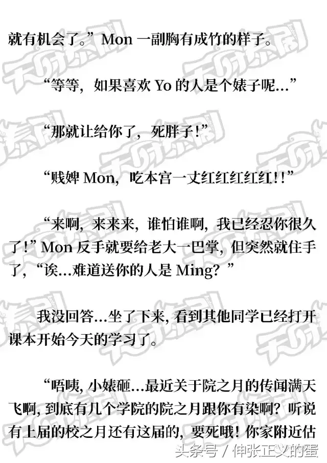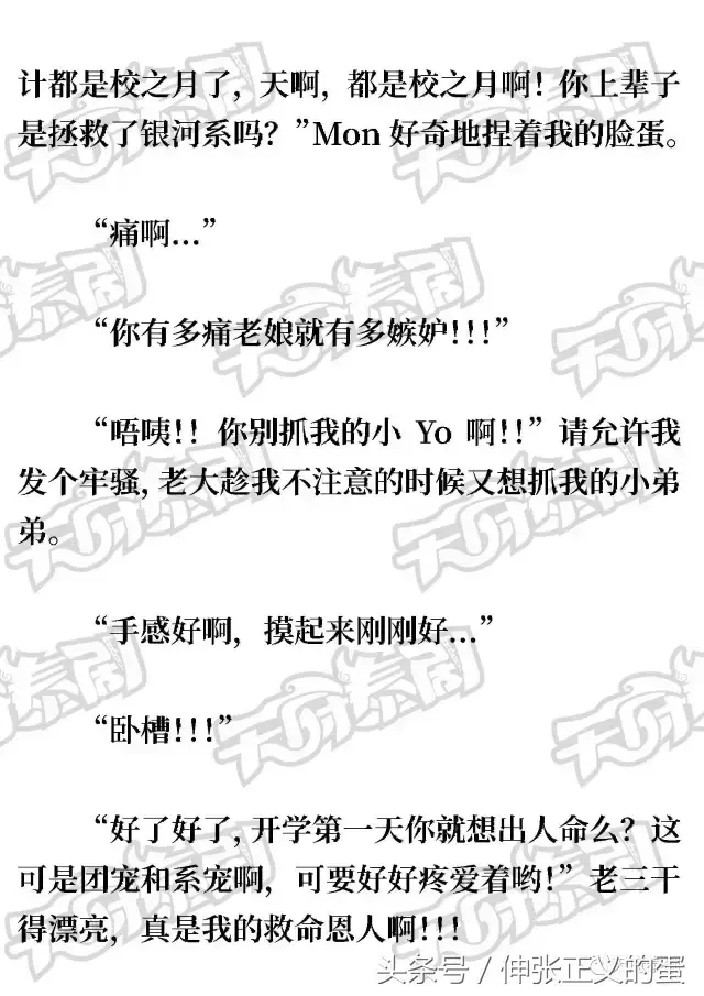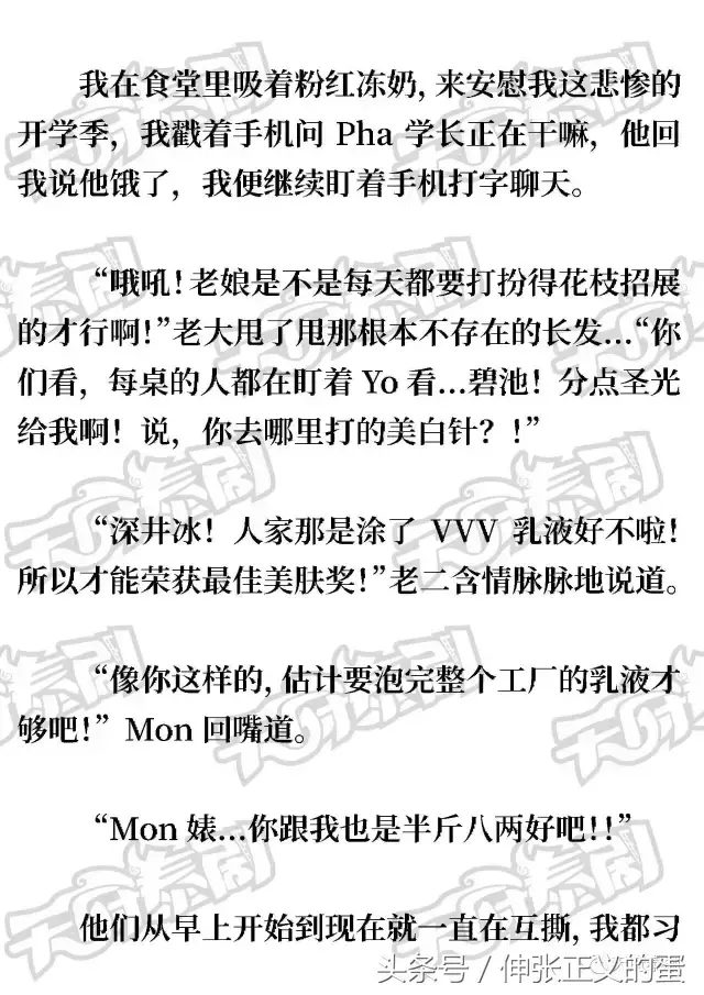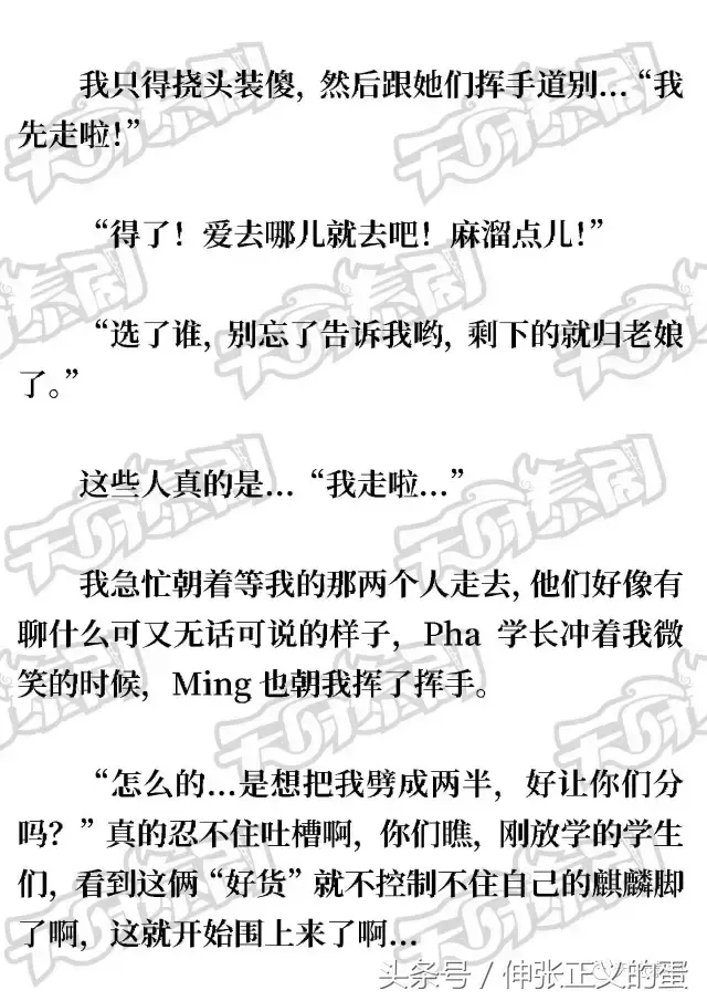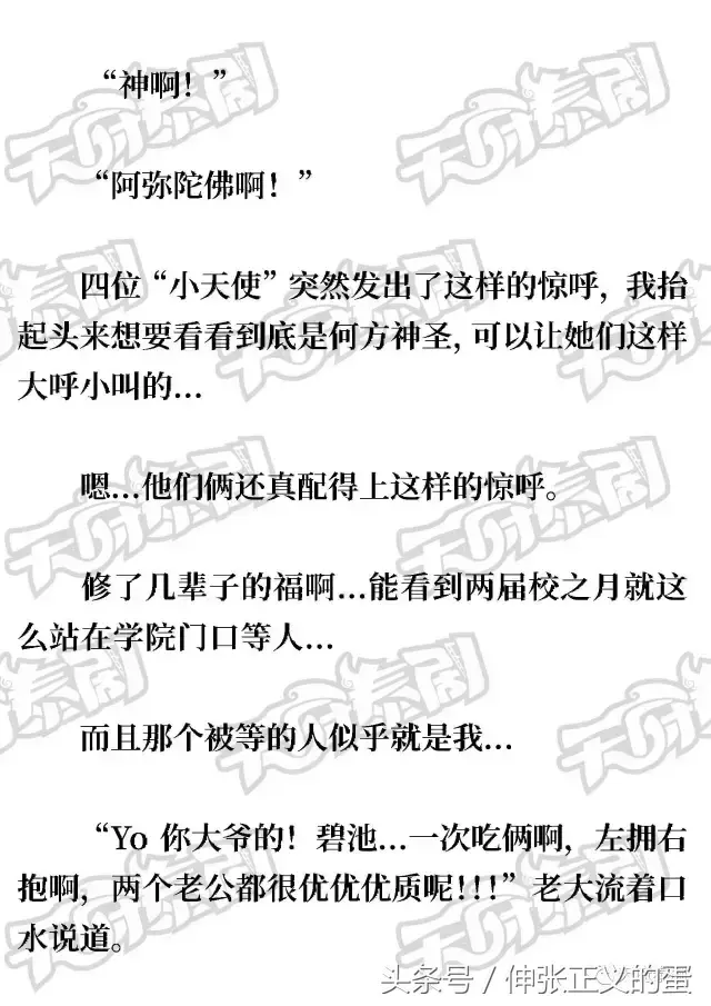 “Yo婊妹!”我断定她们会这样叫我,刚一看到我,这群人就涌过来了,跟她们待在一块儿就感觉自己像一串花儿,这些人可不就跟挨着我的五颜六色的花瓣儿一样么…“快看,大家的眼神都锁定你惹,太好了…我们专业的头牌可长脸了啊!”