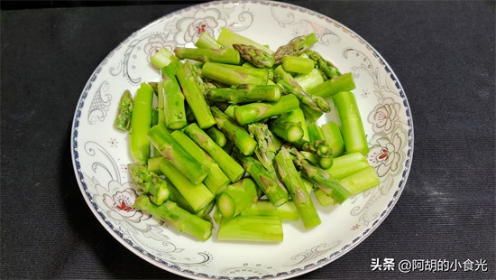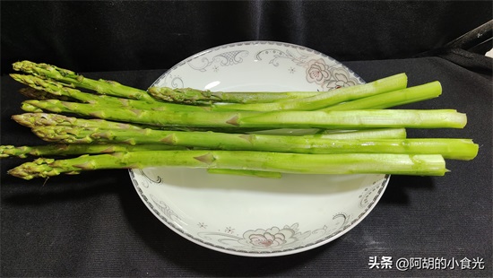 再简单的菜肴也有烹饪小技巧:芦笋尾部的皮稍微有点老,吃之前要刮掉,如果尾部已经木质化了,就是太老了,必须切掉丢弃。