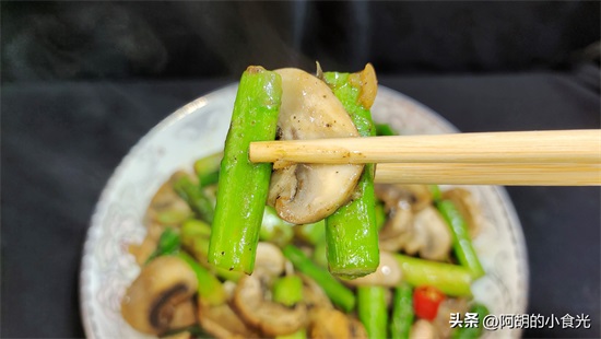 浓浓的黑椒味十分开胃,芦笋脆爽,口蘑鲜嫩,两者结合太完美,春季尝鲜别错过此道菜!