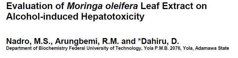 如果用英文搜,几乎没有辣木籽解酒的内容。只有零星文献,研究辣木叶提取物对“酒精导致的肝毒性”的影响,比如下面这篇: