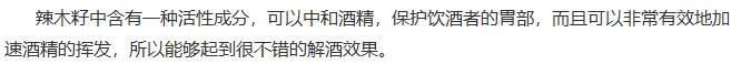 用中文在网上搜索辣木籽解酒的信息,会出现相当多的网页,但说法基本上是高度相似的聊聊数语,可见是出自同一源头。典型的说法如下: