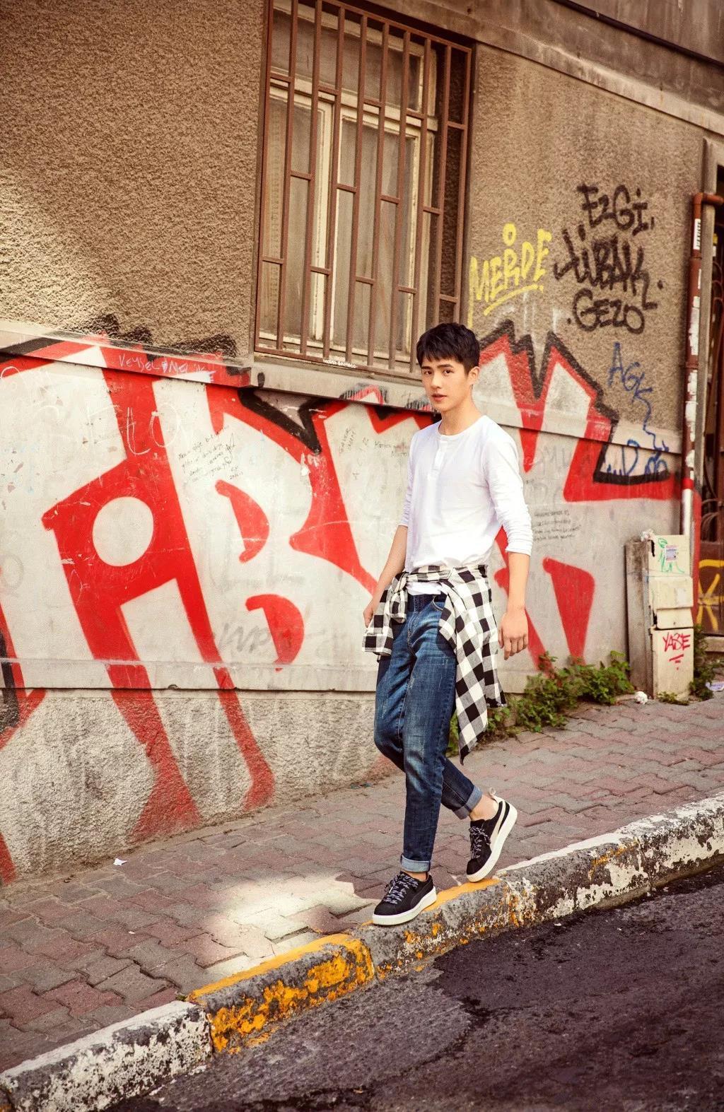 首先如果不是走的嘻哈风,拍照时上衣请一定选择短款的,这样才能有效地把腿拉长~