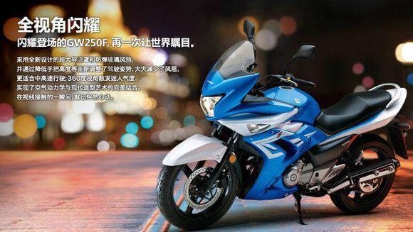 动力方面GW250配备了水冷4气门异步双缸发动机,最大扭矩22Nm/6500转。该车的操控非常灵活,而且坐姿非常舒服,动力的话虽然是一台双缸车,但是主要是旅行和舒适性,所以在动力方面可能没有很强的那种激情,车重占一大部分原因。