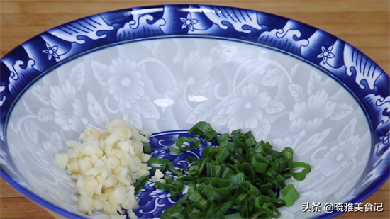 1、首先,我们准备上一些小葱,切成葱花;然后将几颗大蒜拍碎,切出来点蒜末,两种料切好之后,装碗备用。