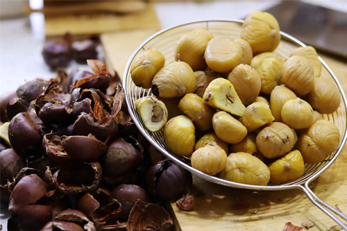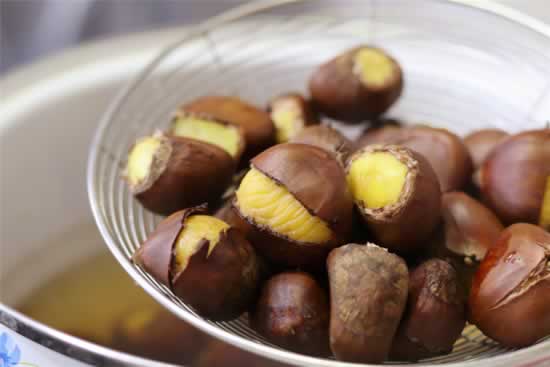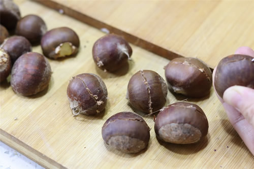 板栗的每年的9月和10月成熟,秋天正是吃板栗的的好季节,每当这时候大街小巷都会飘起“糖油板栗”那种独有的香甜味,在家里也会用板栗加工一些菜品,如板栗烧鸡、烤板栗等,但吃板栗有一个“难题”,就是板栗的外壳坚硬,内膜坚韧,想剥出一颗完整的板栗并不是太容易。今天分享一个剥板栗的好方法,特别的简单,这样处理过的板栗,双手一掰黄澄澄的板栗就能掉出来,干净又完整。
