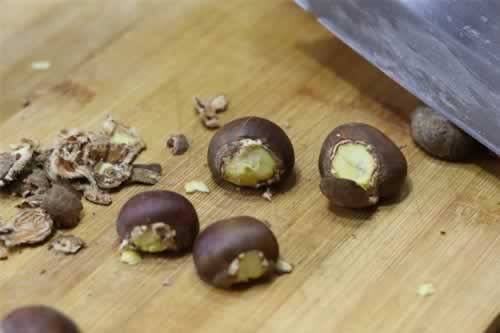 巧剥生板栗,板栗在这里划一条线,双手一掰就掉出来,干净又完整