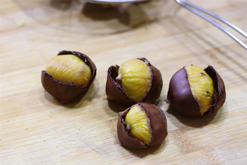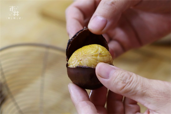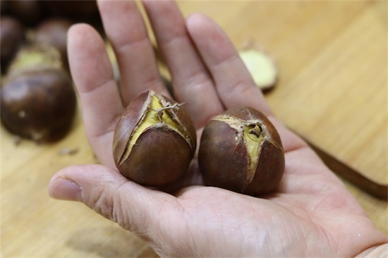 甚至有些板栗风干过以后,外壳自己就炸裂开了,剥皮就更容易了。