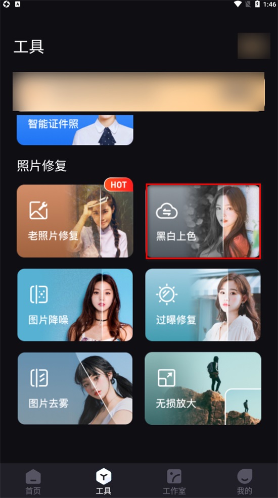它就没有PS操作复杂了,只要选择上方的“图片工具箱”中的“画质修复”,接着弹出一个窗口,选择“黑白上色”,编辑完成后点击“保存”即可,操作简单,有需要的小伙伴,可以试试看。