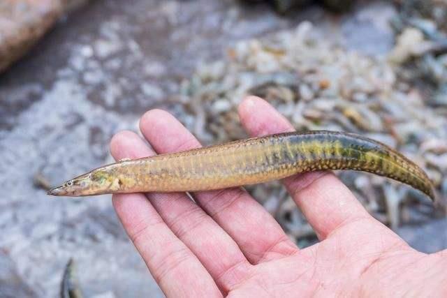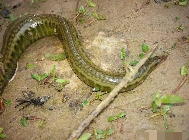 体细长而呈圆柱状,头部膨大,颊部隆起。吻短而扁平;口开于吻端,斜裂;上下颌均具齿。眼甚小,隐于皮下。鳃裂在腹侧,左右鳃膜愈合。没有胸鳍与腹鳍;背鳍与臀鳍也都退化成皮褶,而与尾鳍相连。体裸露无鳞片,富黏液;侧线完全,沿体侧中央直走。体背为黄褐色,腹部颜色较淡,全身有不规则黑斑纹。