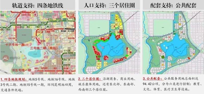 为了打造环湖新动能,昆明池旁边规划了4条地铁+3个居住圈+大量配套。