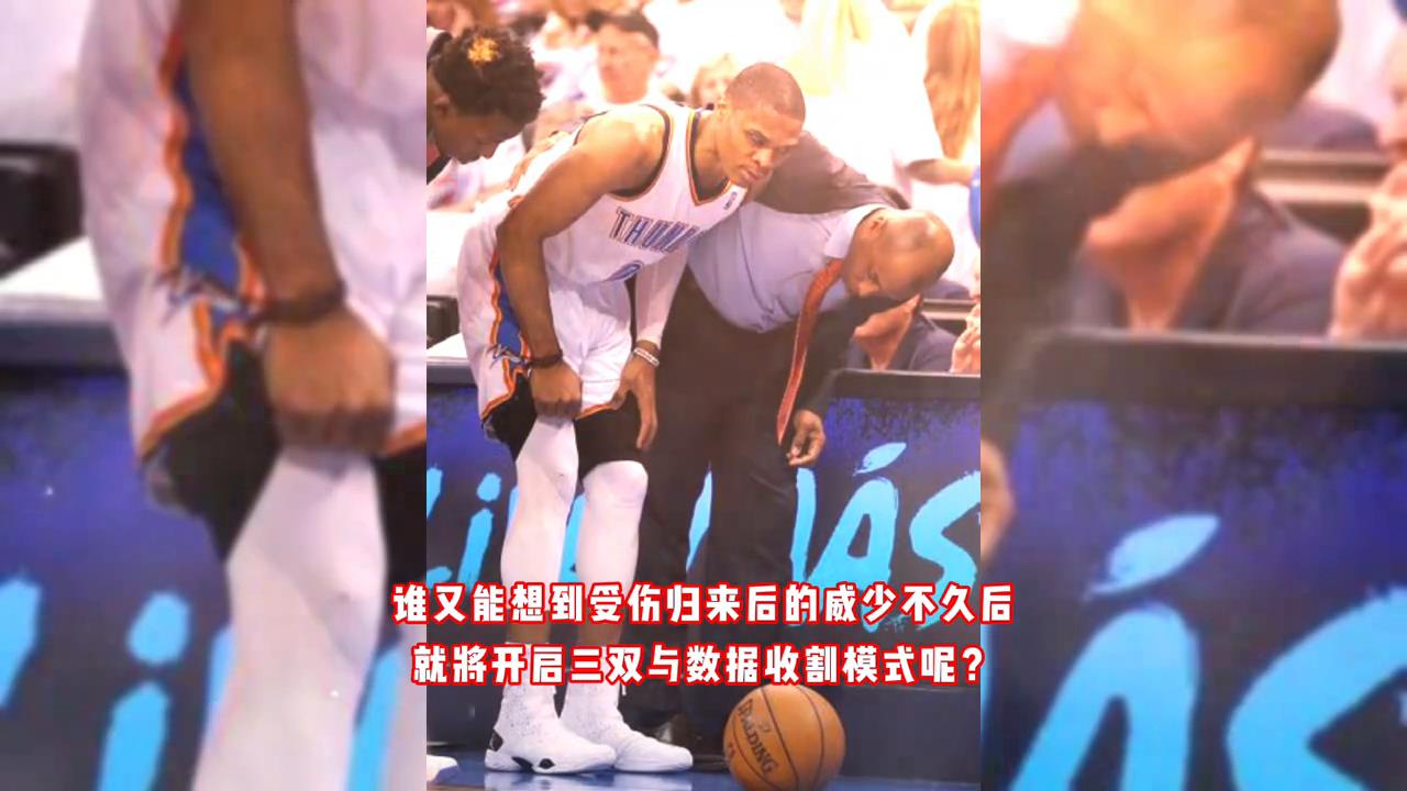 ·在生涯的第六个赛季,威斯布鲁克受到了伤病的困扰,仅代表雷霆队出场46场常规赛,场均得到21.8分、5.7个篮板和6.9次助攻。在季后赛中,威斯布鲁克输给了马刺队,止步于西部决赛。谁能想到,在受伤归来后不久,威斯布鲁克就开启了他的三双与数据收割模式呢?