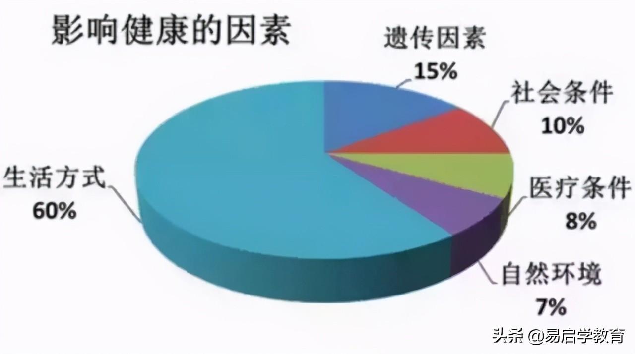 生活方式占影响健康因素的60%,是最主要的影响因素。