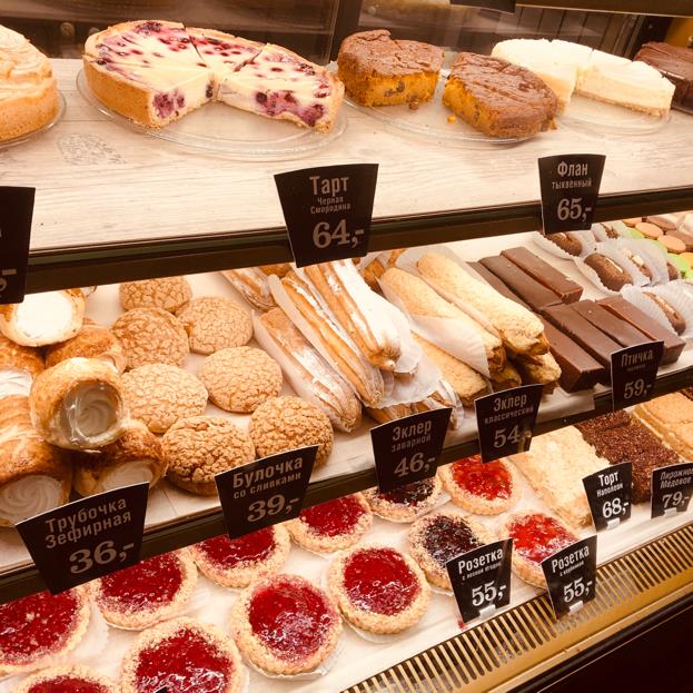 在此,我想给大家推荐一家开在瓦西里步行街上的日本网红西饼店,这家西饼店有很多不同味道的整个蛋糕,当我试过所有味道后,依然觉得原味是不二之选,一个原味的整个大蛋糕需要650卢布,当我走出这家西饼店还剩余186卢布。