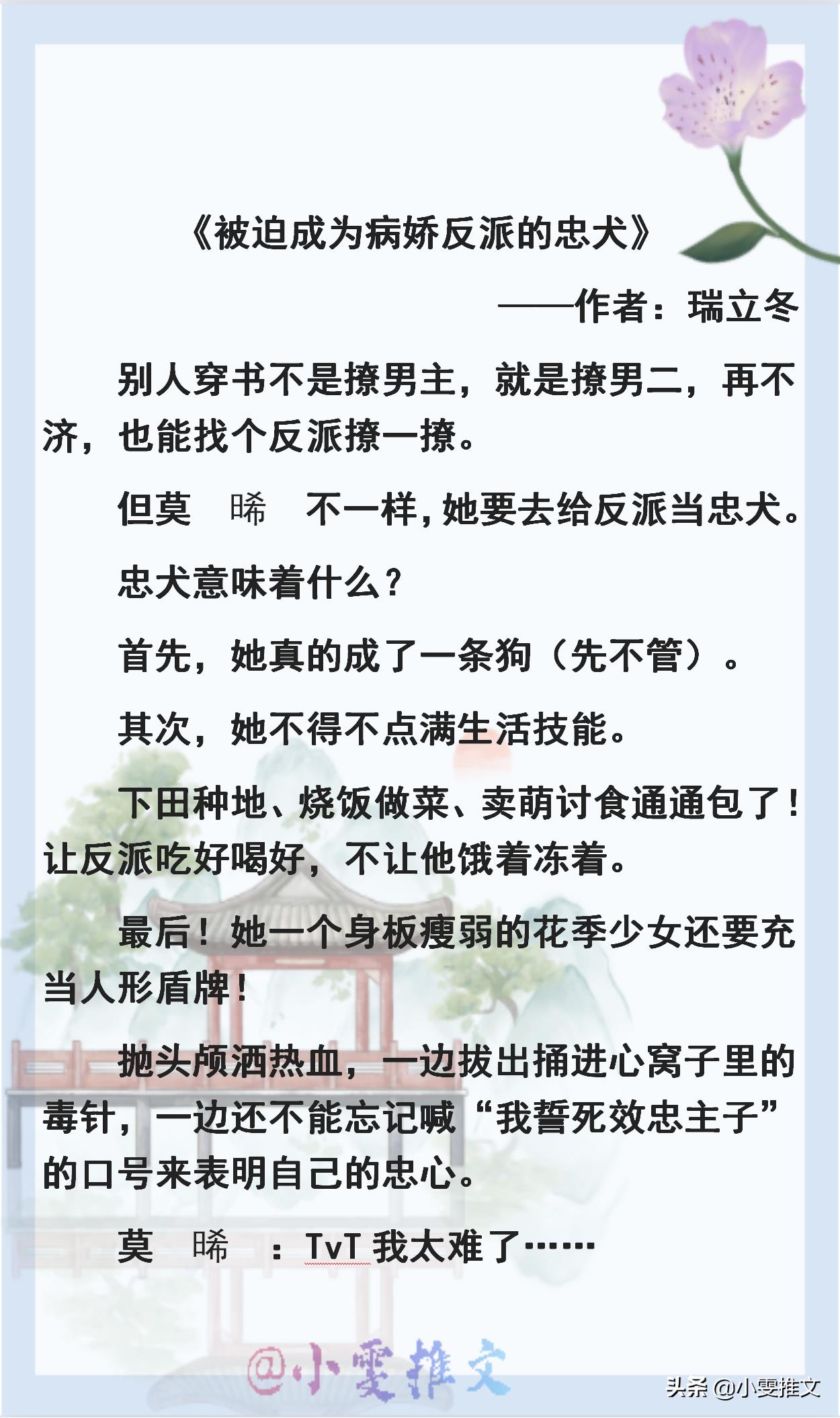 3本穿书小甜文《被迫成为病娇反派的忠犬》《虐文女配选择跑路》