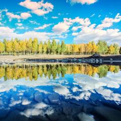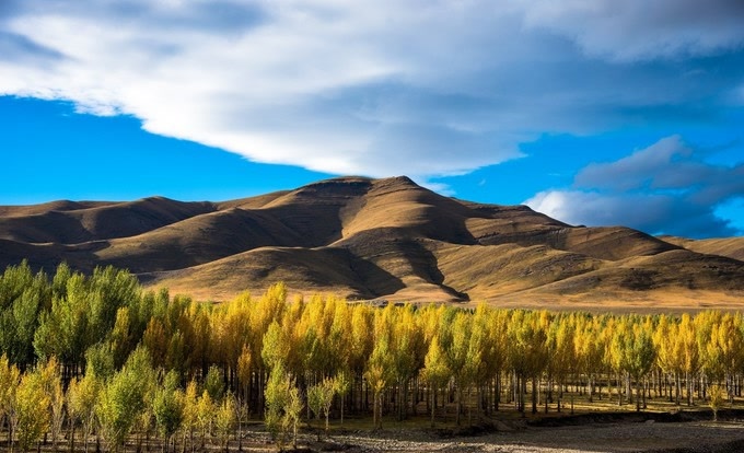 稻城的秋天,被上天染成金色,各种绿逐渐变成了各种黄甚至是红色,但是仔细观察又会看到,有那么一些绿色夹杂其中,这种多彩描绘的美好实在是让人难忘。那时的树木被时光深浅不同的绿色黄色,看那一片茂密的黄树林更是让人难忘,让人想把这些美丽的场景收藏在自己的脑海中。虽然不再是春夏的生机勃勃,但是有着一种独特的沉寂,一种踏实温柔的感觉,像是细声细语的在诉说这片大地的故事。