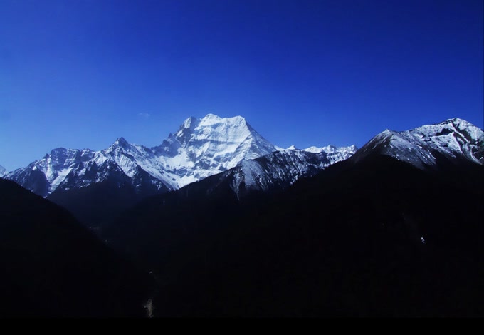 央迈勇藏语意为“文殊菩萨”,海拔5958米,在佛教中排在《三怙主》雪山之首。央迈勇像少女,娴静端庄。站在峰尖,转身向后望去,群山环绕着的宽阔峡谷间,森林、草地、溪流和谐地各守一方,气势莽莽。