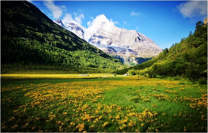 夏季很适合去稻城游玩,高原天气不至于太冷,也不会热得让人受不了,能够看到晴朗的天空,湛蓝色铺上白色的蓬松云朵,树木的绿的油亮,在阳光下染上一层金色的光泽,有一种开阔的清新,在夏季能够看到雪山有一种穿越季节的感觉。尤其是夏季是稻城花朵开放的季节,能够看到大片盛开的花朵点缀在草地间。