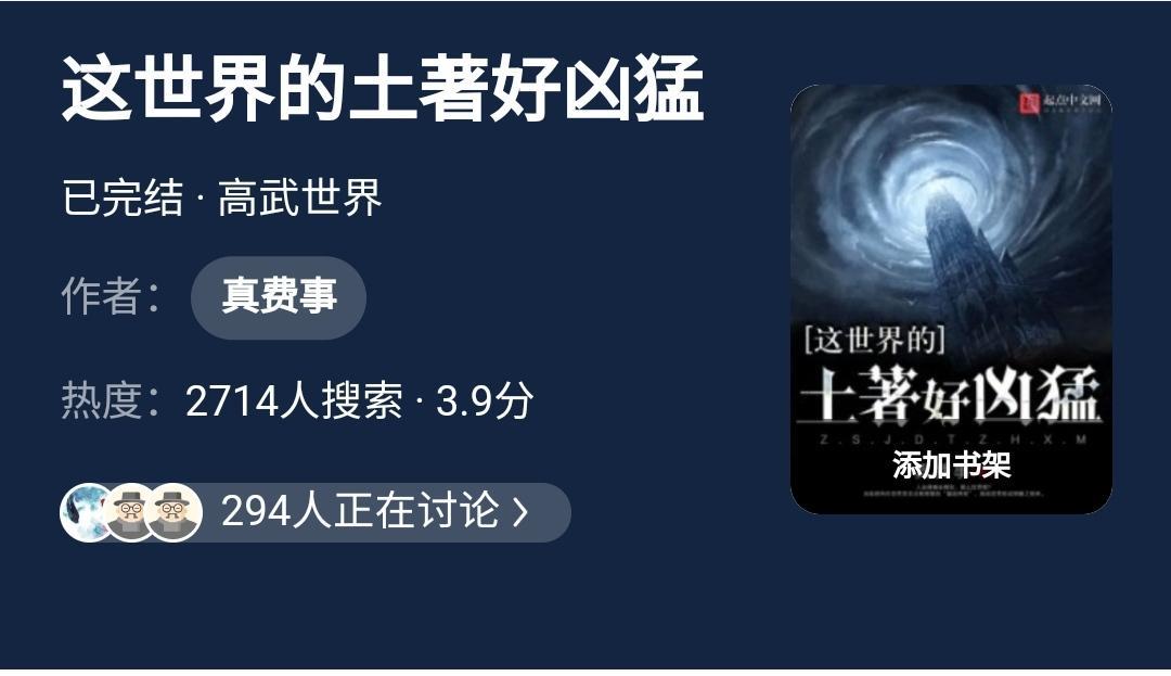 都市异能类,异界入侵地球,这书名上的土著是地球人,主角忽悠异界的种族,意外得到魔力,在得知异界入侵,用传销方式忽悠人,加入似九头蛇(曙光)的组织!然而有趣的是男主金手指居然是嘴遁max,忽悠能力一流,基本上所有人都被忽悠瘸了。还是第一次见到这种吹牛不打草稿,讲故事全靠编的男主,深得装 逼的精髓。